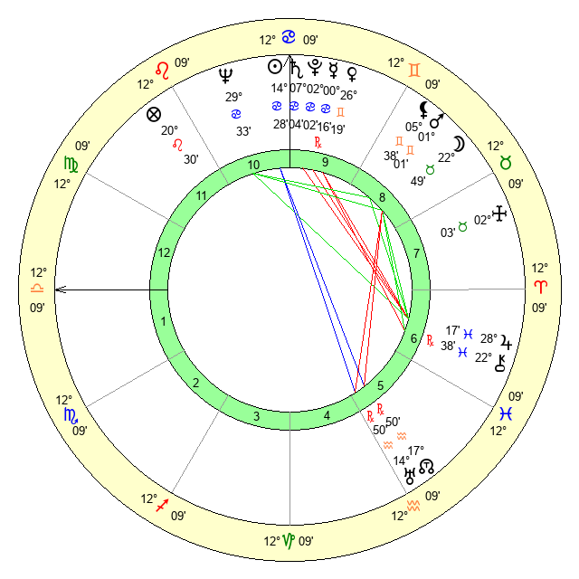 | Sun | 14 Cancer 28 | 15 Cancer 50 | 1 Scorpio 12 |