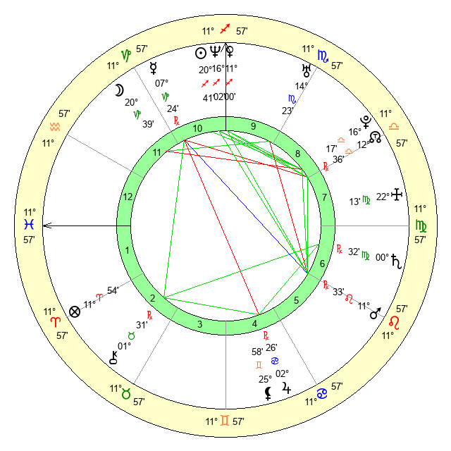 | Saturn | 0 Virgo 56 | 13 Pisces 16 | 28 Leo 59 |