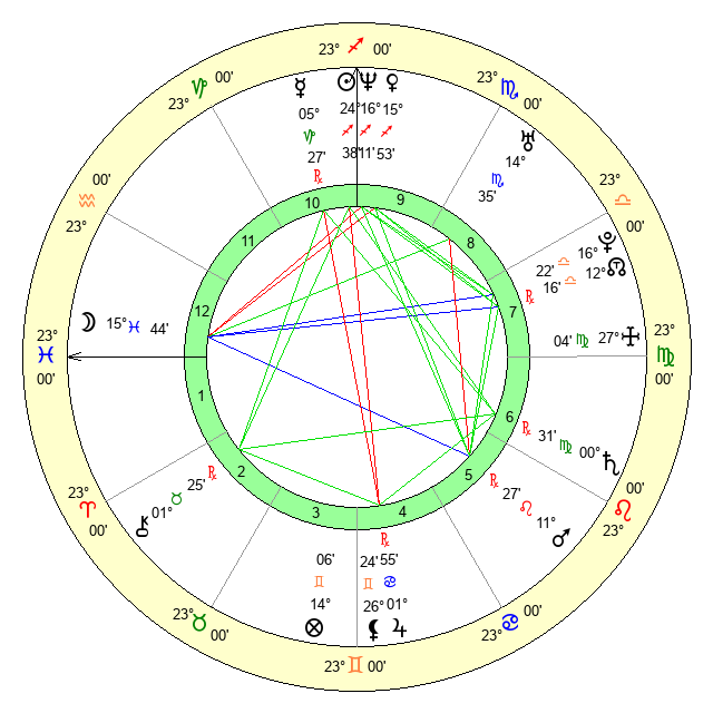| Saturn | 0 Virgo 55 | 13 Pisces 28 | 28 Leo 42 |