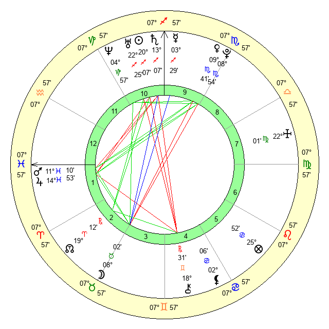 | Mars | 11 Pisces 10 | 5 Leo 58 | 7 Aries 38 |