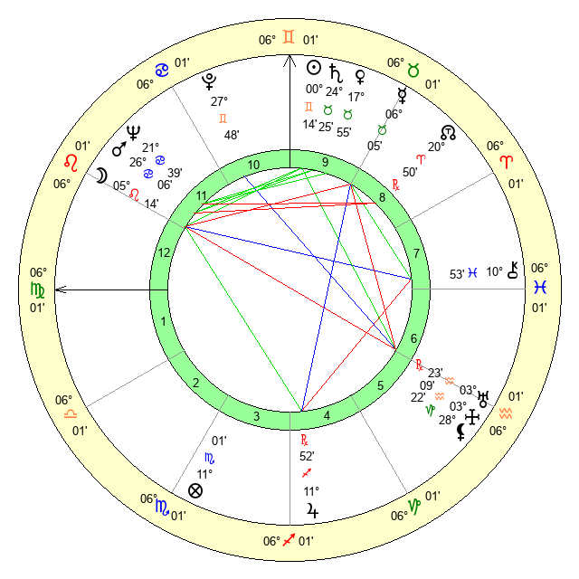 | Sun | 0 Gemini 14 | 0 Gemini 53 | 18 Virgo 34 |