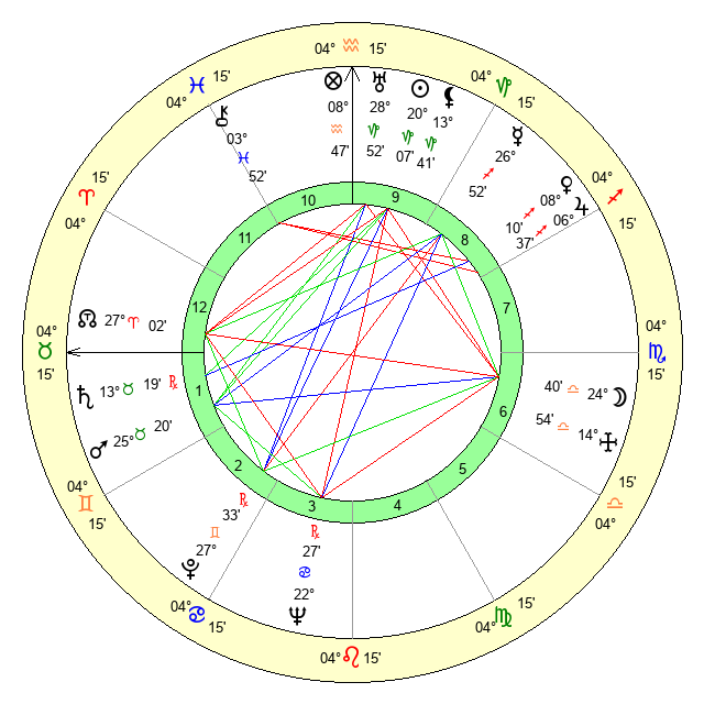 Saturn | 13 Taurus 58 | 15 Pisces 20 | 22 Taurus 40 |