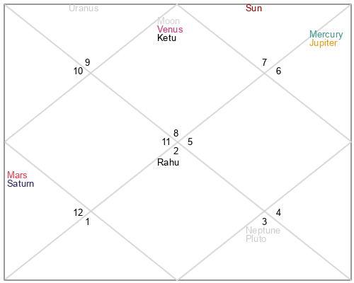 | Rahu | 9 Gemini 45 | 16 Pisces 9 | 3 Gemini 36 |
