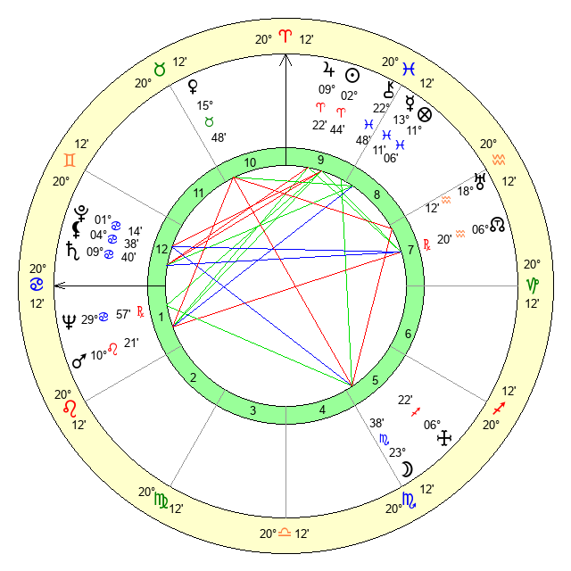 | Moon | 23 Scorpio 37 | 17 Capricorn 33 | 15 Scorpio 50 |