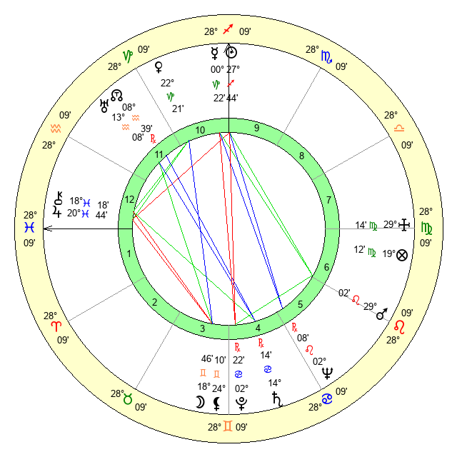 | Moon | 18 Gemini 46 | 4 Virgo 51 | 16 Gemini 0 |