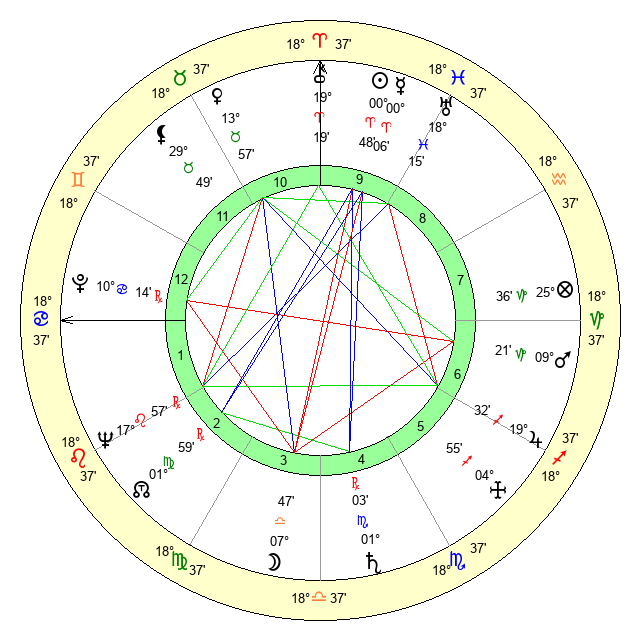 | Moon | 7 Libra 48 | 22 Sagittarius 20 | 21 Gemini 50 |