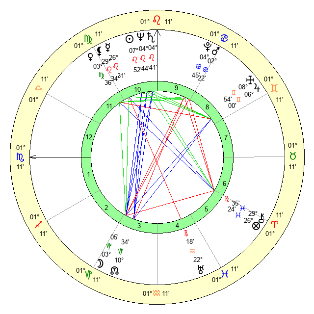 | Venus | 3 Virgo 36 | 0 Cancer 38 | 10 Capricorn 27 |