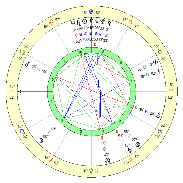| Venus | 6 Cancer 52 | 7 Gemini 51 | 23 Virgo 43 |