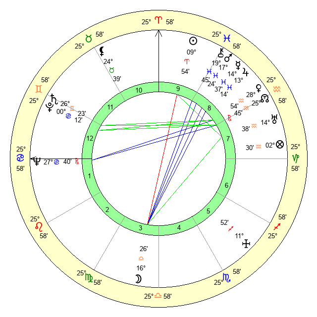 | Sun | 9 Aries 54 | 11 Aries 14 | 25 Cancer 55 |