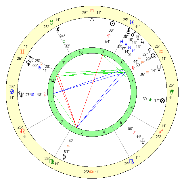 | Moon | 1 Libra 45 | 27 Aries 55 | 9 Libra 55 |