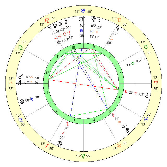 | Sun | 16 Cancer 38 | 17 Cancer 44 | 0 Scorpio 28 |