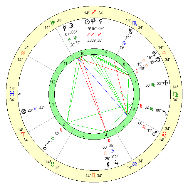 | Saturn | 0 Virgo 56 | 13 Pisces 13 | 29 Leo 4 |