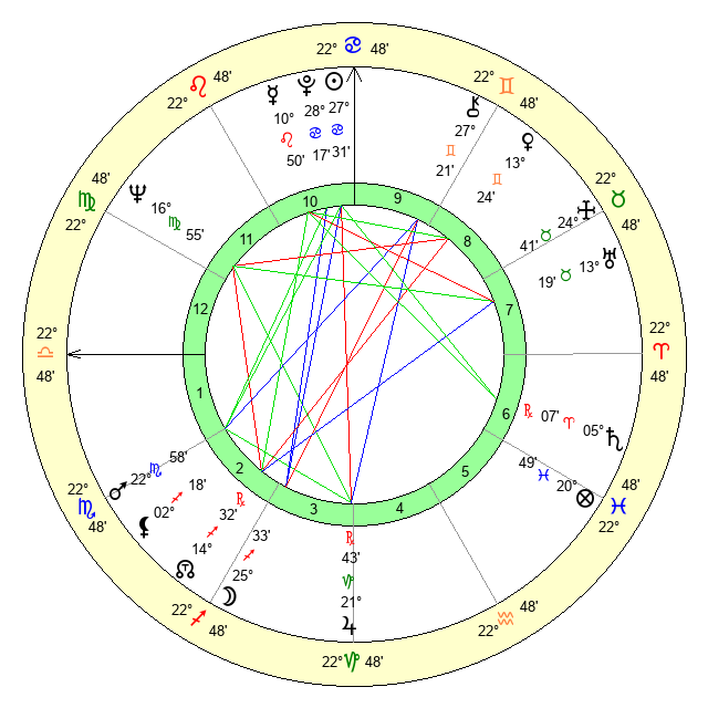 | Sun | 27 Cancer 31 | 28 Cancer 14 | 22 Libra 54 |