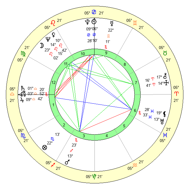 | Sun | 6 Cancer 11 | 7 Cancer 15 | 15 Libra 37 |