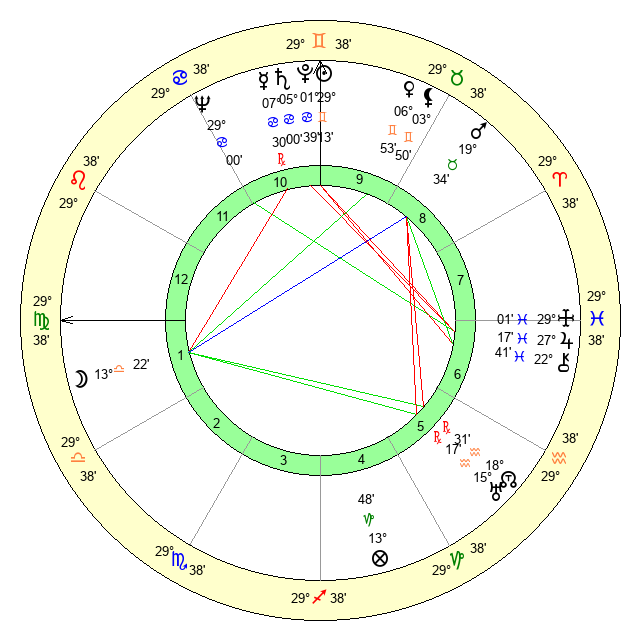 | Sun | 29 Gemini 13 | 0 Cancer 34 | 15 Libra 19 |