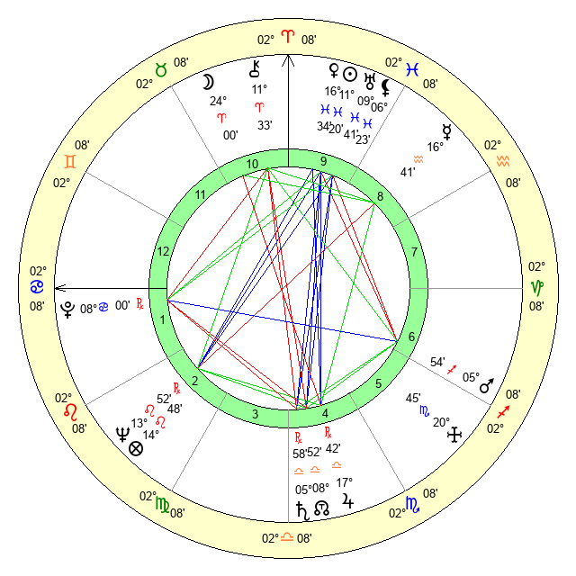 | Moon | 24 Aries 2 | 19 Aries 6 | 10 Aquarius 7 |