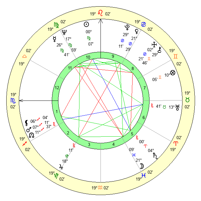 | Neptune | 17 Virgo 59 | 1 Aries 33 | 20 Virgo 49 |