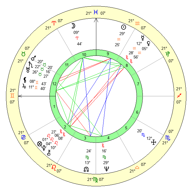 | Moon | 9 Aries 42 | 8 Scorpio 3 | 22 Aries 53 |
