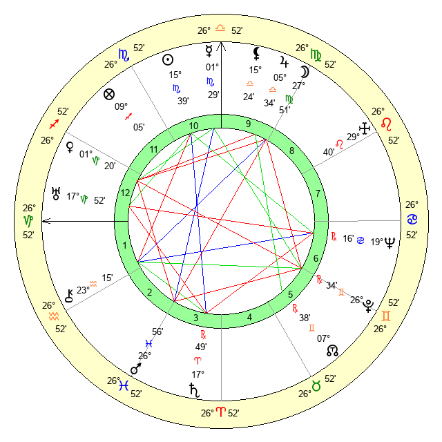 | Moon | 27 Virgo 54 | 10 Aquarius 1 | 5 Sagittarius 14 |