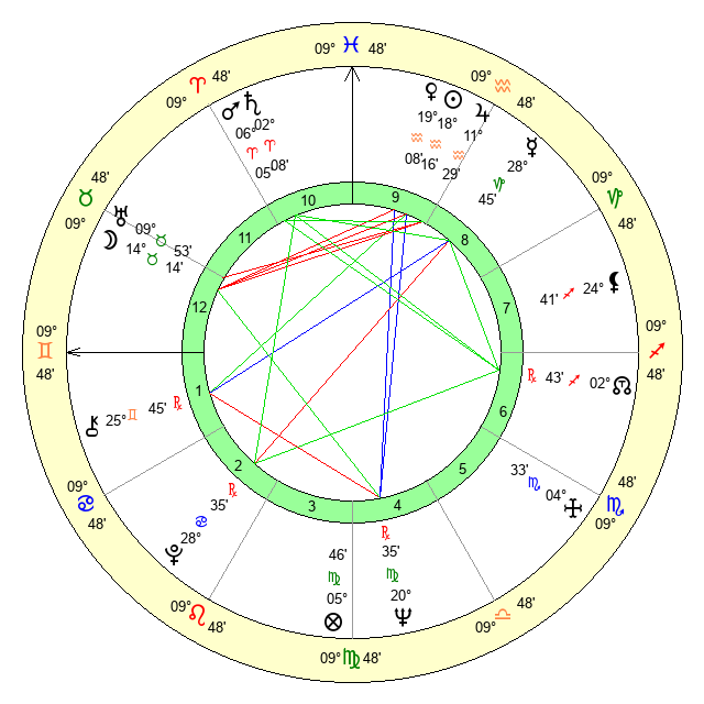 | Venus | 19 Aquarius 8 | 2 Aries 23 | 7 Gemini 0 |