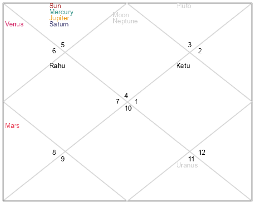 | Rahu | 9 Scorpio 3 | 18 Pisces 13 | 3 Scorpio 29 |