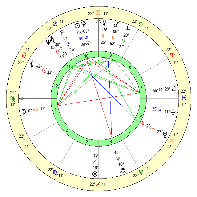 | Moon | 2 Libra 10 | 2 Leo 15 | 19 Virgo 32 |
