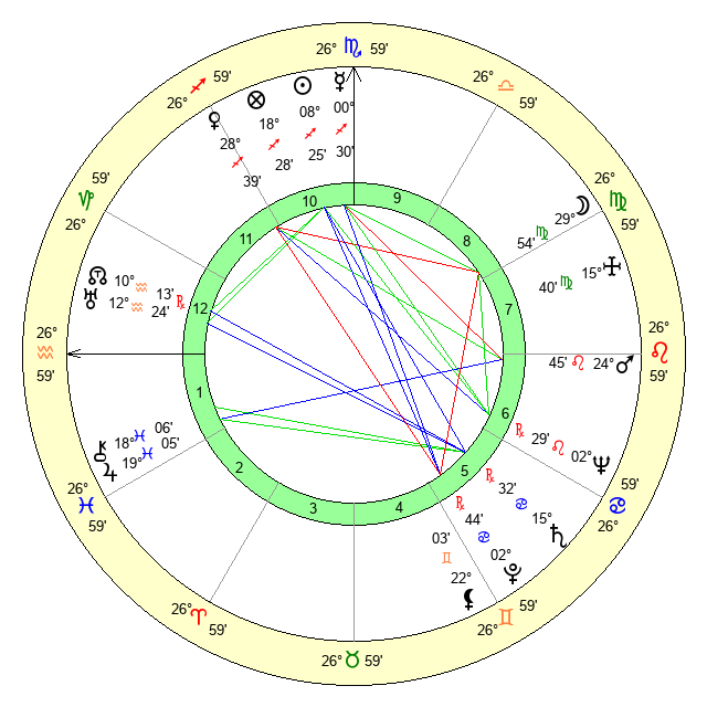 | Moon | 29 Virgo 53 | 15 Sagittarius 10 | 28 Virgo 35 |