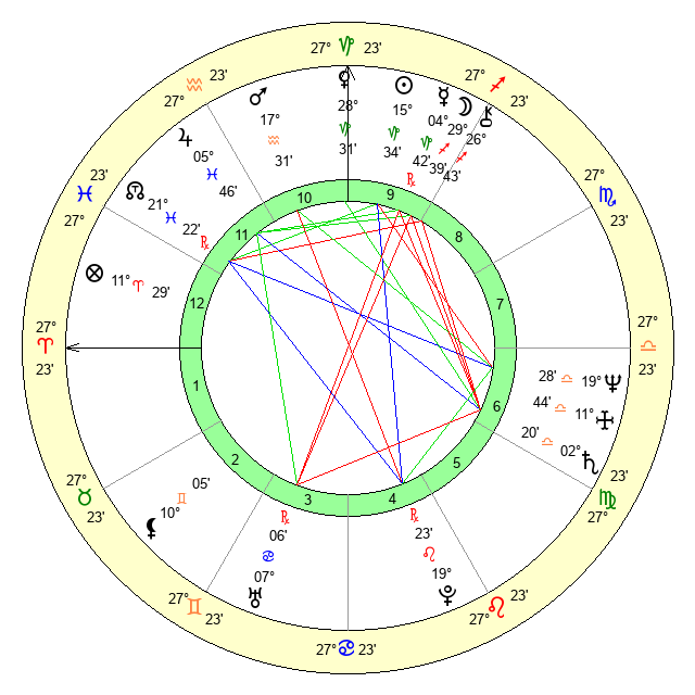 | Saturn | 2 Libra 51 | 26 Pisces 26 | 29 Virgo 23 |