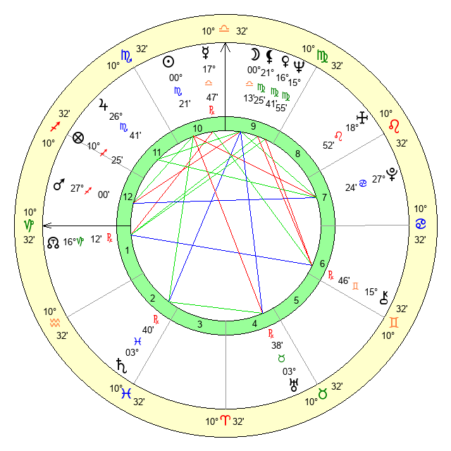 | Neptune | 15 Virgo 55 | 29 Pisces 56 | 16 Virgo 27 |