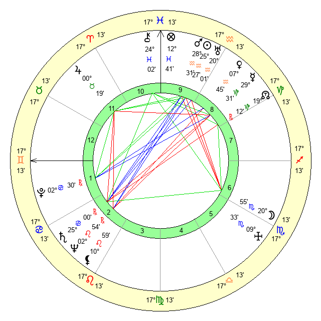 | Venus | 7 Aquarius 45 | 6 Aries 35 | 21 Gemini 30 |