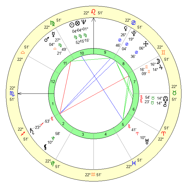 | Venus | 26 Cancer 46 | 3 Leo 36 | 24 Scorpio 15 |