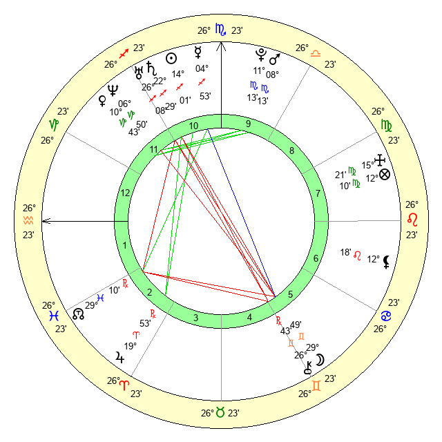 | Uranus | 26 Sagittarius 9 | 28 Taurus 49 | 28 Sagittarius 25 |