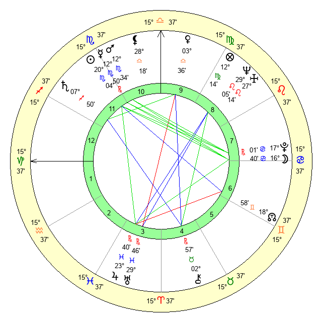 | Venus | 3 Libra 37 | 8 Scorpio 10 | 26 Capricorn 4 |