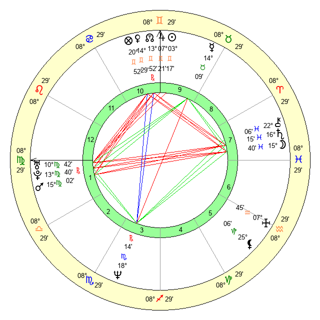 Sun | 3 Gemini 18 | 3 Gemini 46 | 0 Leo 37 |