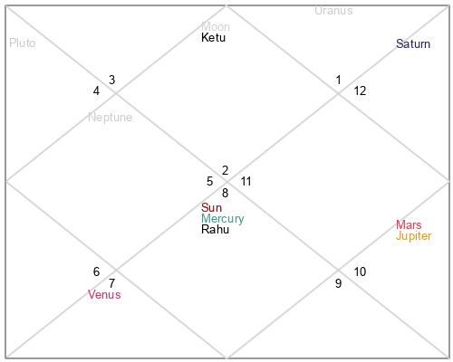 | Ketu | 6 Gemini 30 | 14 Virgo 27 | 1 Gemini 50 |