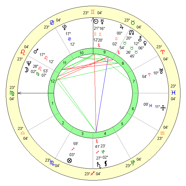 | Sun | 21 Gemini 13 | 21 Gemini 58 | 23 Virgo 19 |
