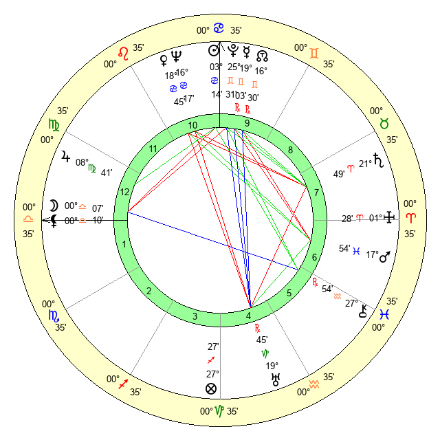 | Sun | 3 Cancer 15 | 4 Cancer 11 | 25 Libra 27 |