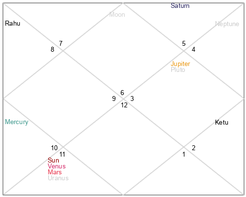 | Rahu | 9 Sagittarius 10 | 28 Pisces 58 | 3 Sagittarius 34 |