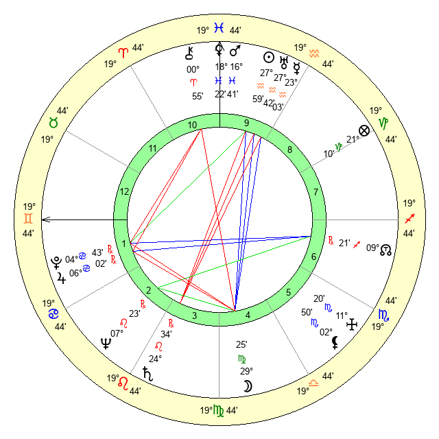 | Mars | 16 Pisces 41 | 17 Cancer 16 | 5 Gemini 52 |