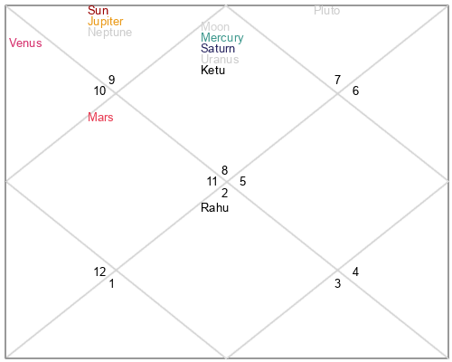 | Ketu | 25 Scorpio 41 | 12 Virgo 42 | 23 Scorpio 31 |