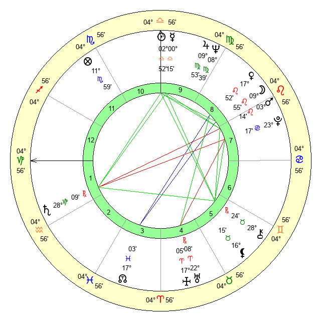 | Mars | 3 Leo 14 | 2 Scorpio 36 | 17 Virgo 6 |