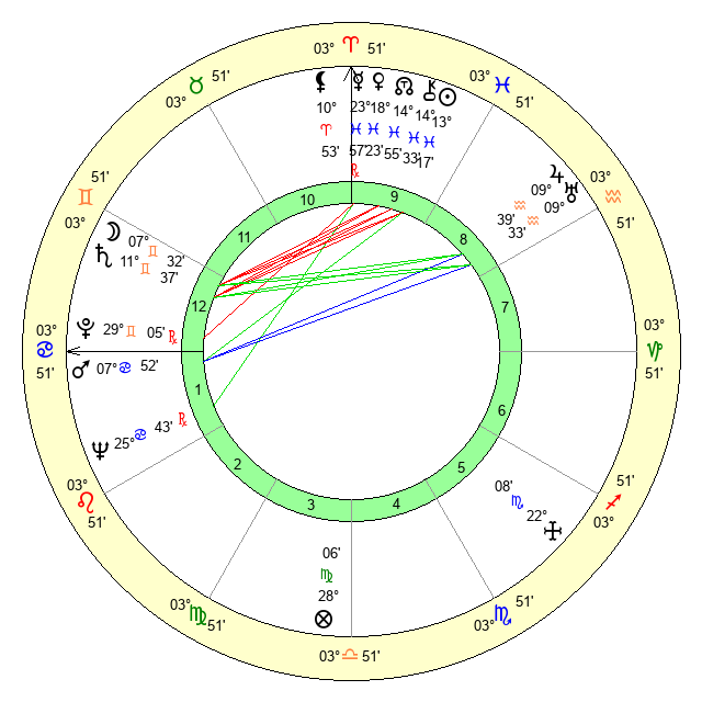 | Venus | 18 Pisces 23 | 10 Aries 41 | 4 Leo 12 |