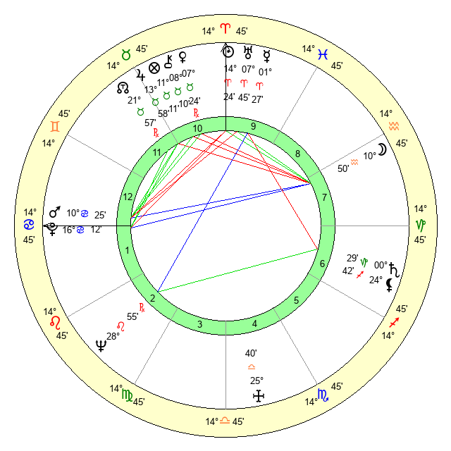 | Sun | 14 Aries 25 | 15 Aries 9 | 16 Cancer 57 |