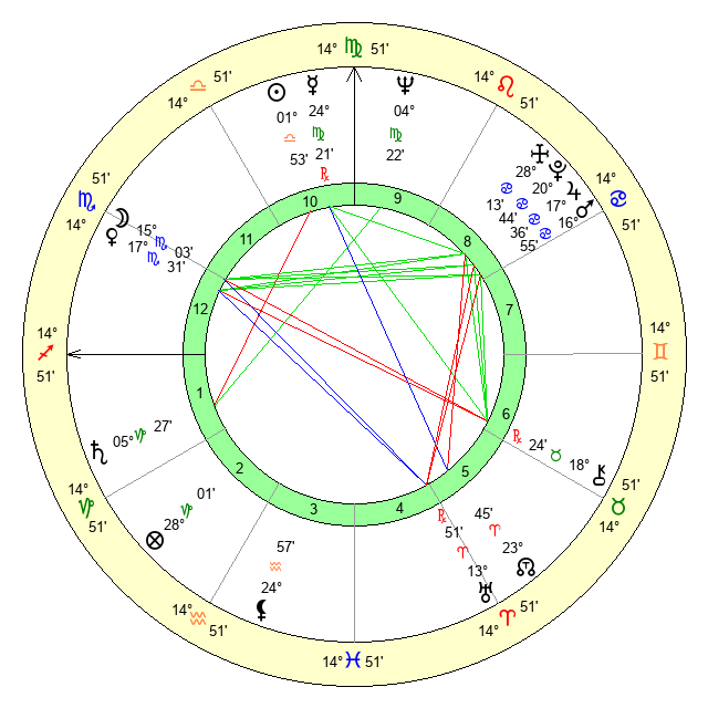 | Neptune | 4 Virgo 23 | 0 Aries 41 | 5 Virgo 40 |