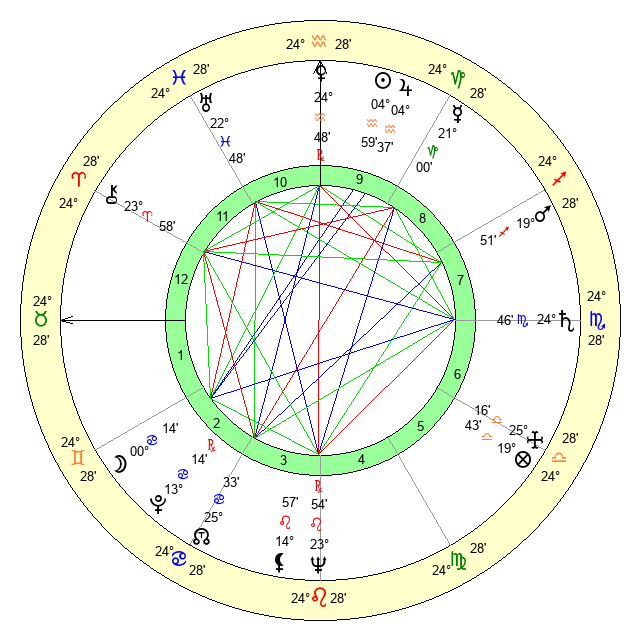 | Saturn | 25 Scorpio 15 | 16 Pisces 41 | 24 Scorpio 2 |