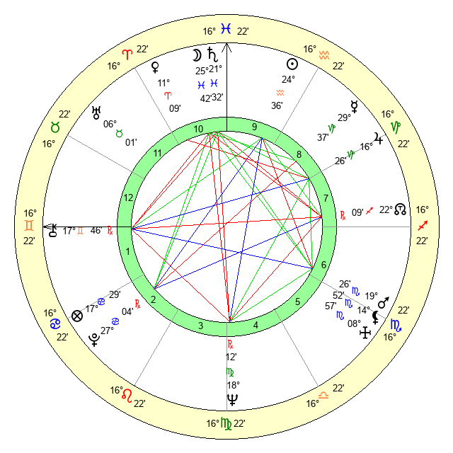 | Moon | 25 Pisces 40 | 8 Virgo 8 | 21 Gemini 58 |