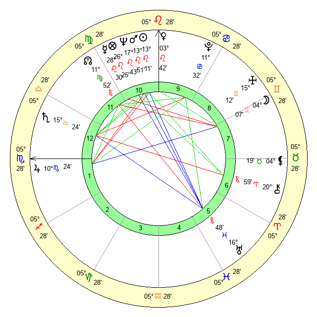 | Mercury | 28 Leo 31 | 5 Leo 21 | 23 Scorpio 43 |