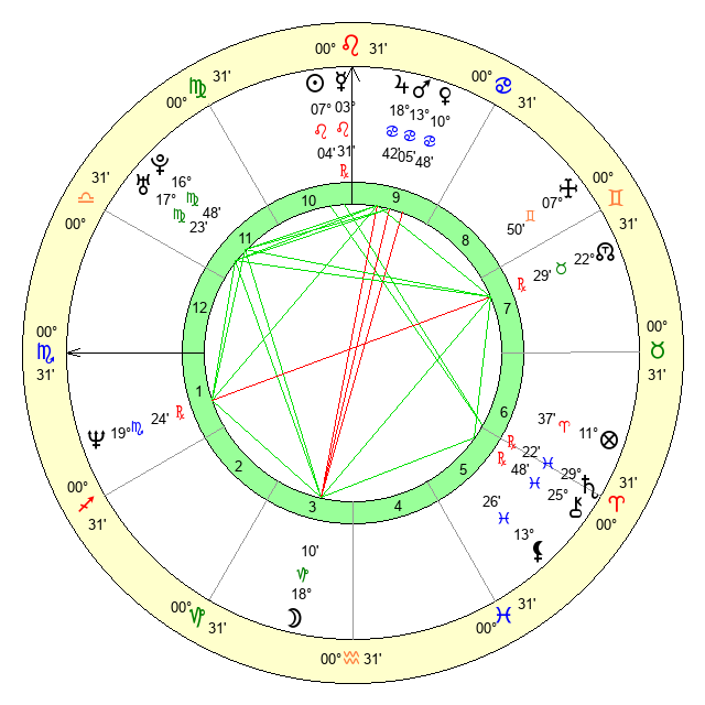 Mercury | 3 Leo 31 | 9 Leo 57 | 17 Libra 24 |