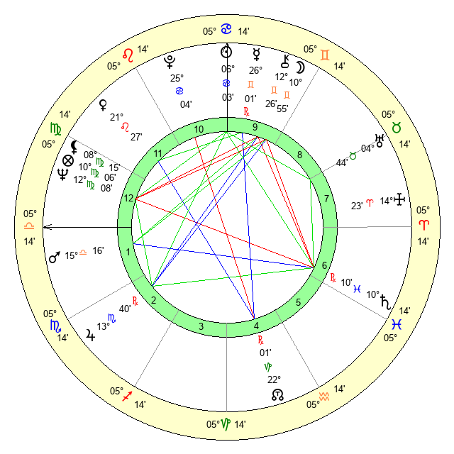 | Sun | 6 Cancer 3 | 7 Cancer 15 | 2 Libra 40 |