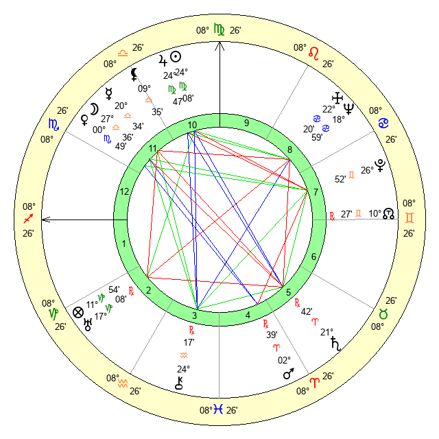 | Moon | 27 Libra 43 | 6 Leo 20 | 23 Capricorn 18 |